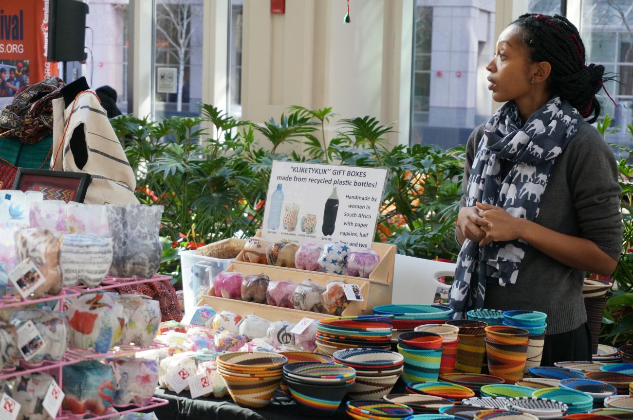 From across the world, Eve and Nico Gifts and Home Décor is an American business run by Grace Basemera and Robert Tusiime, who travel to and from South Africa building markets for basketry in the US. Along with Zulu decorative plates and Botswana baskets, Eve and Nico Gifts will also bring their eclectic Klikety Klik Boxes. They explain, “The kliketyklikbox™ is a versatile and trendy, yet practical and upmarket, eco-friendly gift box recycled from plastic 2-liter [bottles]. Women who have been unemployed for longer than two years are taught the skills needed to create these boxes, while at the same time learning business management and sales skills.”