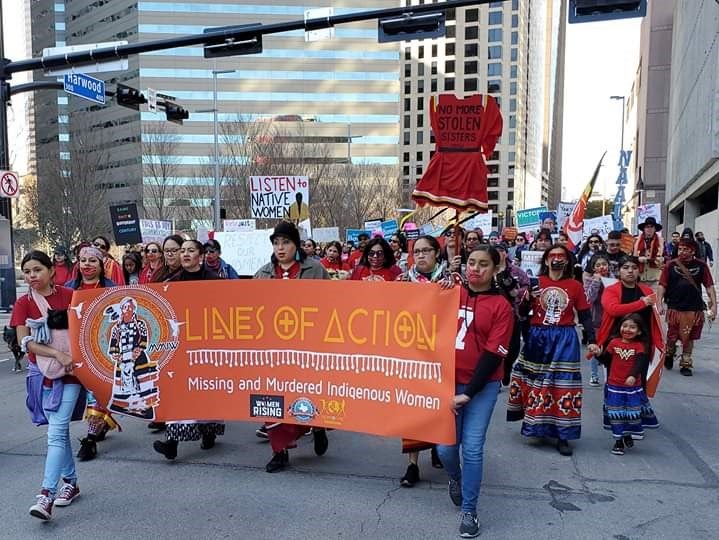 Over just a few months in 2017, Jody Voice went from collecting names for a small, local vigil, to being invited to lead off the Dallas Women’s March as MMIW-TX and raising the visibility of MMIW to communities across Texas. Voice was already an Indigenous rights advocate and American Indian Heritage Day (Texas) Ambassador when she volunteered to help with that first vigil. But she credits Dallas’ 2018 Heritage Day Celebration for igniting the MMIW movement locally.