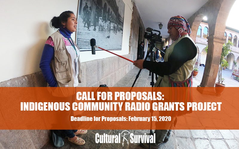 Cultural Survival is pleased to announce its fourth Call for Proposals for projects in Indigenous community radio. The Indigenous Community Media Grants Project is part of Cultural Survival’s Community Media Program, with a goal to empower Indigenous-owned and Indigenous-led community radio as a platform to inform, entertain, educate, and organize according to their own needs and collective interests as communities.