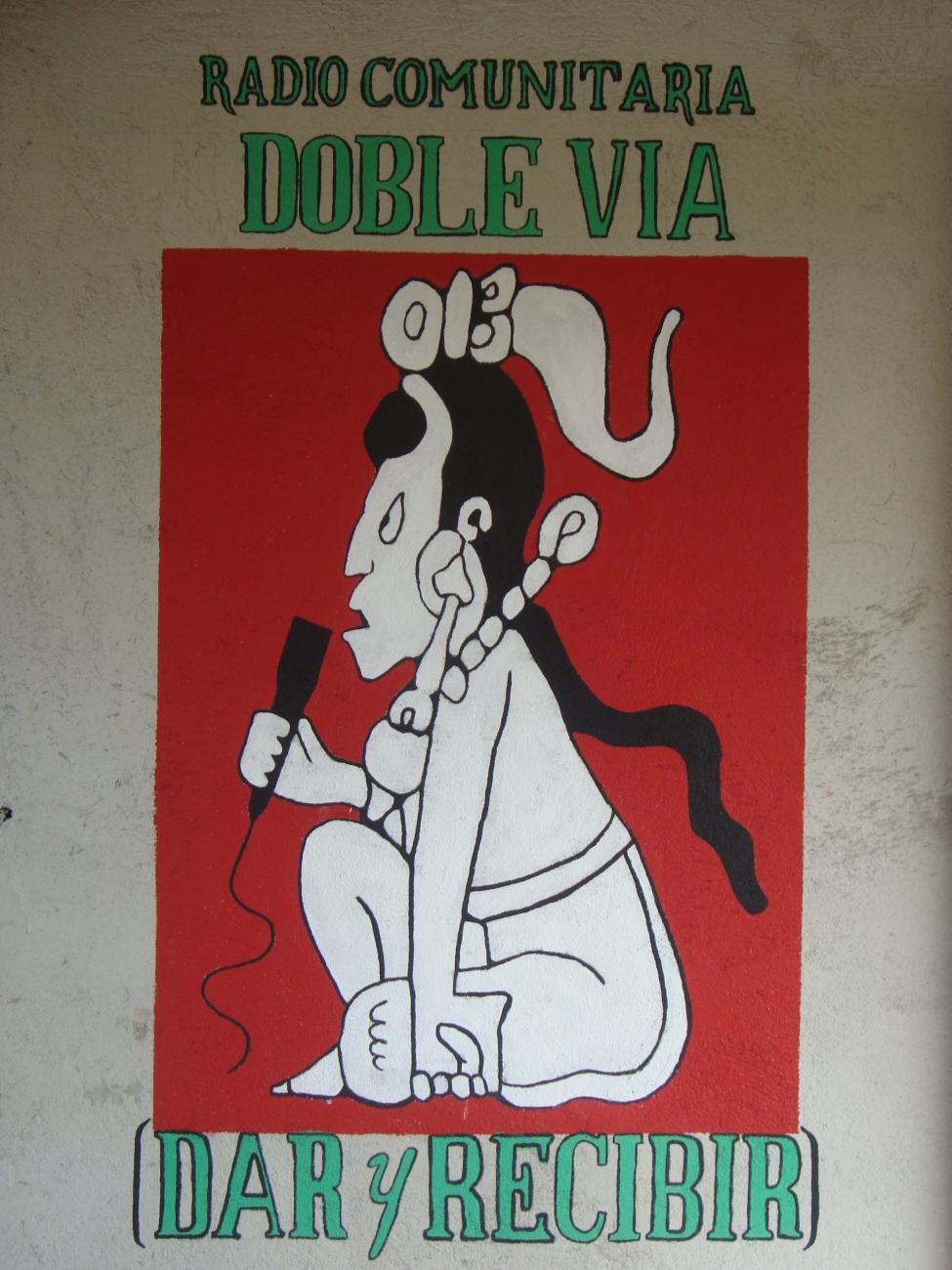 The community radio station Doble Via, “the voice of the youth and childhood” has been characterized over its 10 years of life as a truly community based initiative. It’s programing is aimed at the construction of peace, and covers topics such as the 1996 Peace Accords, the environment, historical memory, Mayan cosmovisión, citizenship, community leadership, community organizing, preventative health, HIV, drug and alcohol addiction, self esteem childhood and adolescence, and gender equality. It promotes dialogue, tolerance, local sports, among other topics. Doble Via, as a form of alternative media, is operated and directed by 40 local youth. It is supported by the mayor, local leadership councils (COCODE municipal), the Association Mujb’ab’l Yol, the health center, women’s groups, catholic and evangelical churches, and approximately 10,000 community members.