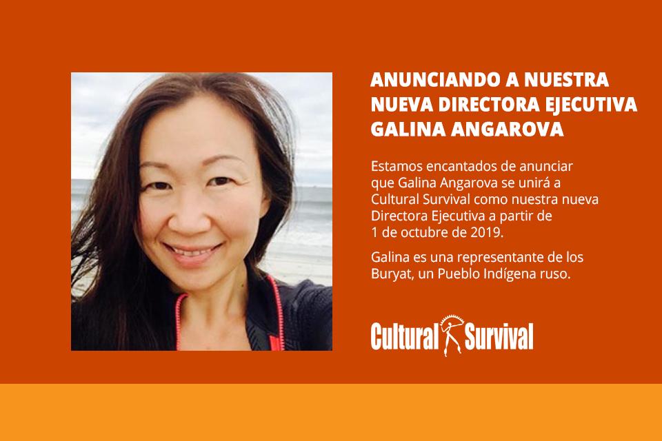 En nombre de la Junta Directiva, me complace anunciar que Galina Angarova se unirá a Cultural Survival como nuestra nueva Directora Ejecutiva, con sede en el Área de la Bahía de San Francisco.