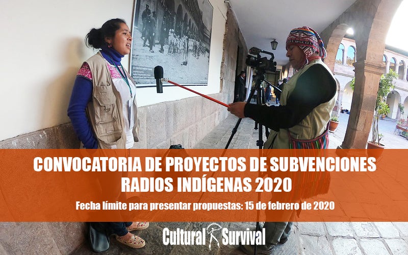 Cultural Survival se complace en anunciar su cuarta convocatoria para presentar propuestas de proyectos de Radios Comunitarias Indígenas. El Proyecto de Subvenciones a Medios Comunitarios Indígenas forma parte del Programa de Medios Comunitarios de Cultural Survival, cuyo objetivo es empoderar a las radios comunitarias y otros medios lideradas por Indígenas y/o por comunidades Indígenas como una plataforma para que las comunidades informen, entretengan, eduquen, se organicen, fortalezcan sus culturas e idiomas y defiendan su territorio de acuerdo a sus propias necesidades e intereses colectivos como Pueblo.