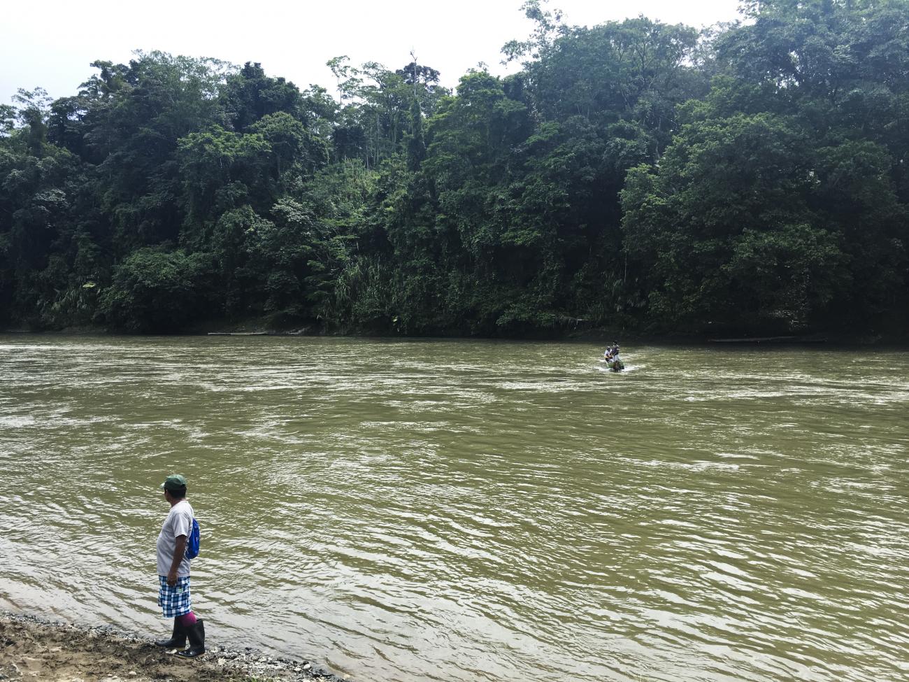 To arrive to the classroom where the meeting with the government was held, men and women of all ages walked between banana plantations and crossed the river by raft.