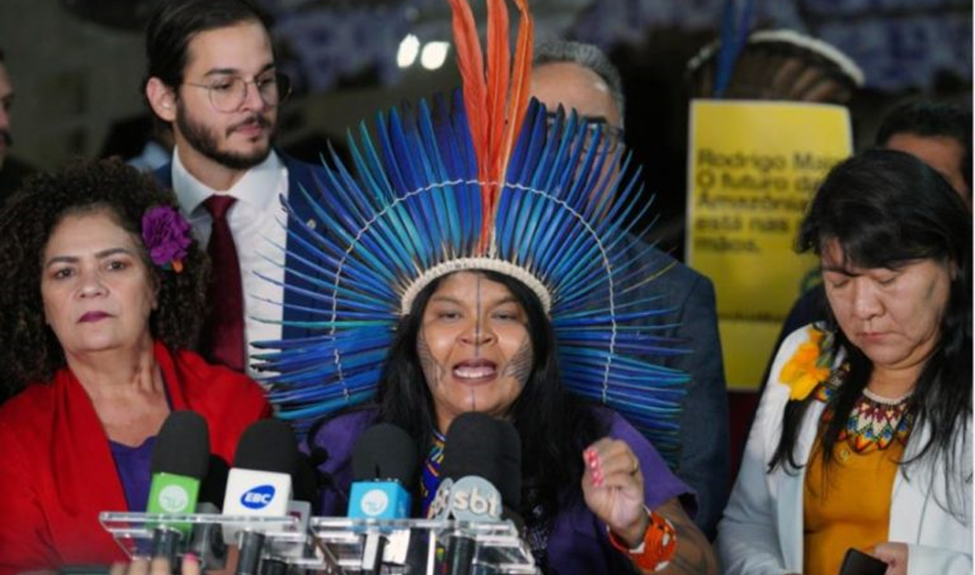 Top photo: Center at the microphone: Sonia Guajajara (Guajajara), elected to the Chamber of Deputies; on the right, Deputy Joenia Wapichan (Wapixana), who is leaving the federal chamber in December. Photo courtesy of Chamber of Deputies/Pablo Valadares.