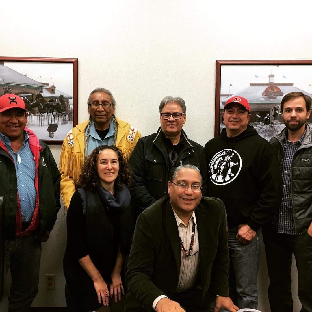 Photo: Meeting on the Standing Rock Sioux Reservation, From L to R: Chairman Harold Fraizer; Chief Arvol Looking Horse; Alyssa Johyl; Grand Chief Edward John; Roberto Mukaro Borrero; Chairman Dave David Archambault II; Baskut Tuncak, Special Rapporteur on Human Rights and Toxins in his personal capacity (photo provided via Baskut Tuncak, October 29, 2016.