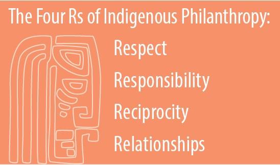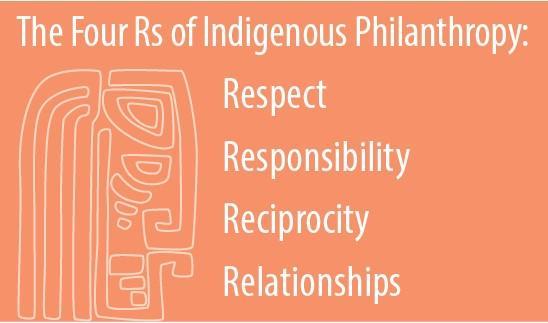 La filantropía Indígena es la práctica de donaciones transformadas y asociaciones basadas en valores basadas en las "4 R" de la filantropía Indígena: respeto, reciprocidad, responsabilidad y relaciones. International Funders for Indigenous Peoples alienta a sus miembros y a otras personas a practicar un nuevo paradigma de donaciones basado en estos principios. Esta filantropía reformula las relaciones de financiación, mejora la calidad de las donaciones y eleva la autodeterminación. Proporciona un camino a seguir para los financiadores que desean asegurarse de que sus donaciones (independientemente del problema o tema) lleguen a las comunidades Indígenas de una buena manera.