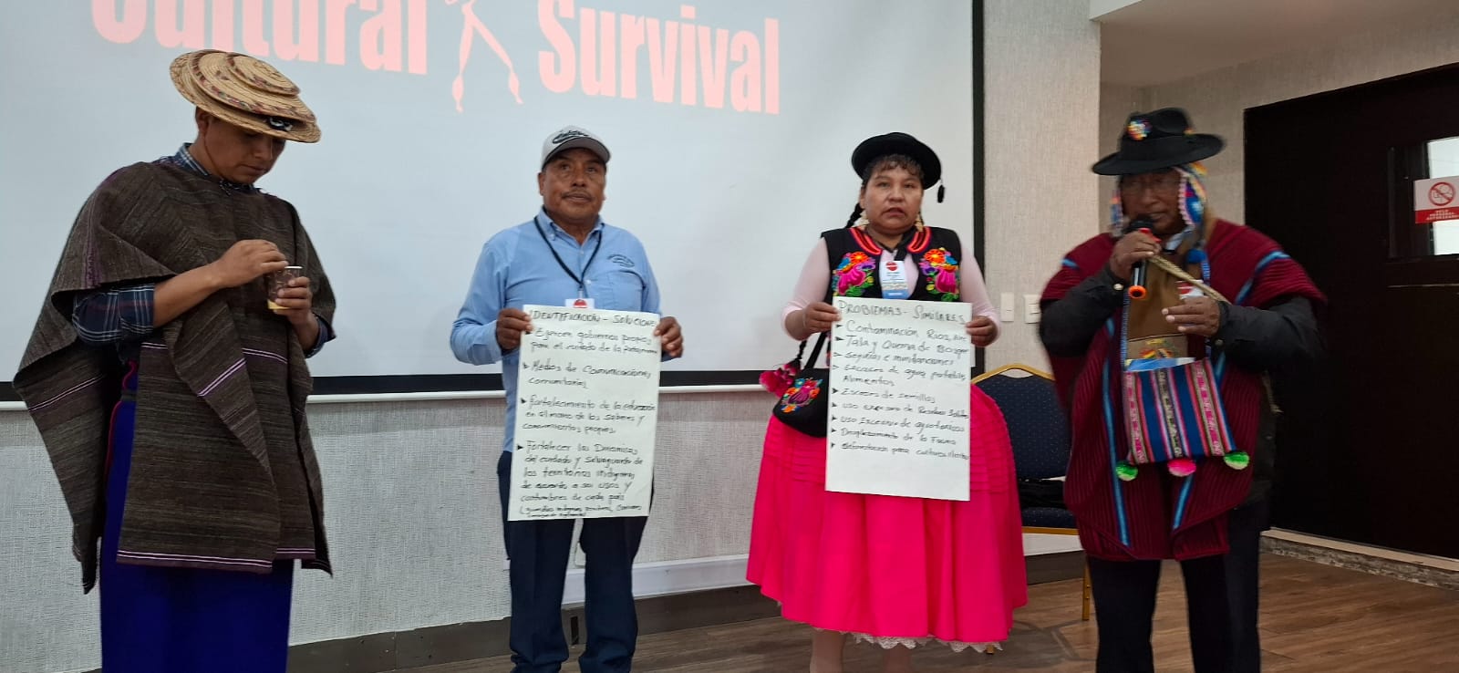 Given the immediacy of this reality, Cultural Survival convened the First Meeting on the Impact and Risks of Climate Change in Bogota, Colombia from January 24-26, 2025. The meeting was a space for Indigenous communities to share experiences of adaptation and mitigation of climate risks and compile their recommendations to strengthen their livelihoods. Participants included Indigenous authorities, community radio stations, and territorial defenders from Peru, Mexico, Panama, Colombia, Bolivia, Ecuador, and Guatemala.