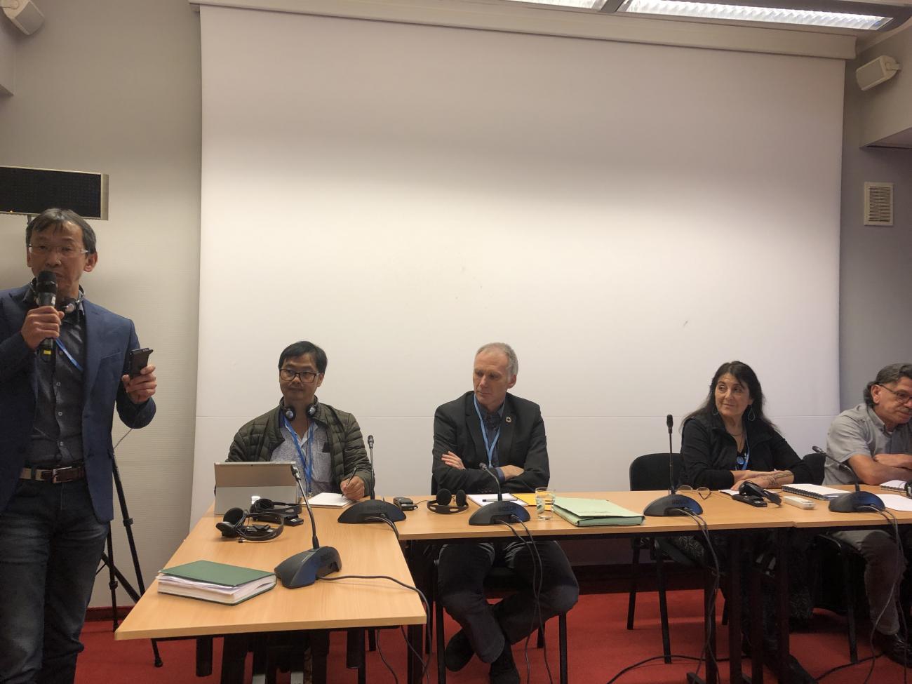 Photo: Members of the International Indigenous Peoples Forum on Climate Change (the IPs Caucus at the UNFCCC), from Russia, Asia and North America regions, with State representatives (Costa Rica and the European Union) discussing ways to ensure the inclusion of Rights of Indigenous Peoples in the “Paris Rulebook” which will be adopted at COP 24 for implementation of the Paris Agreement.