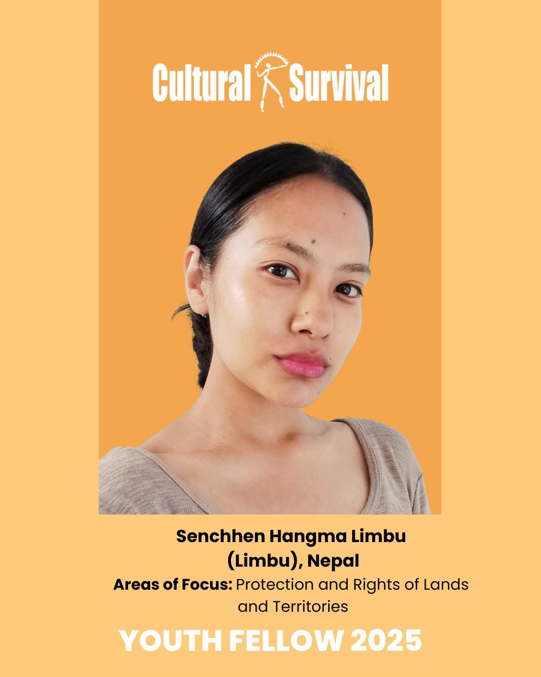 Senchhen Hangma Limbu (Limbu) is an advocate for Indigenous and environmental rights and a supporter of the Mukumlung Protection Movement, which advocates for the protection of sacred sites from ropeway construction for cable cars. She is currently an undergraduate law student at Tribhuvan University in Nepal. Her work includes researching and documenting violations of human rights and land and territory rights for NGOs and regional human rights bodies in Asia.