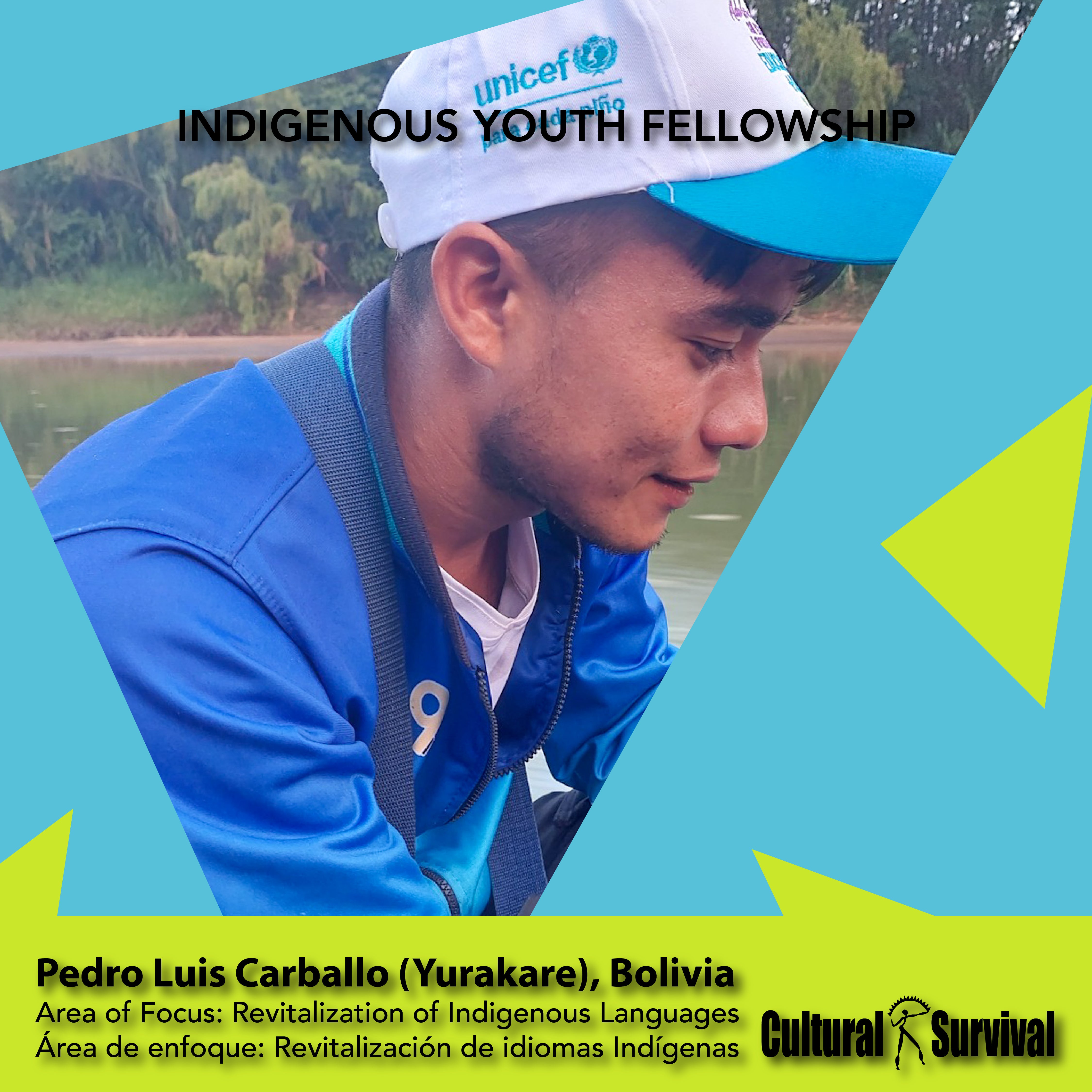 Pedro Carballo was born in the Puerto Victoria Yurakaré community in Cochabamba, Bolivia. From 2019 to 2022, through a project funded by UNICEF and the Samma Foundation, he trained as a theater and film actor. He also trained as a community reporter, which has enabled him to promote the voices of Indigenous youth at radio stations and in local media in Cochabamba.