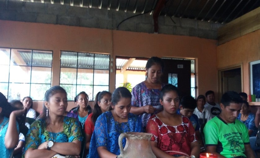 Al llegar al salón de la radio, las autoridades ancestrales estaban esperándonos. Eran personas mayores y que tenían el bastón de madera que representa la autoridad en las comunidades Mayas.