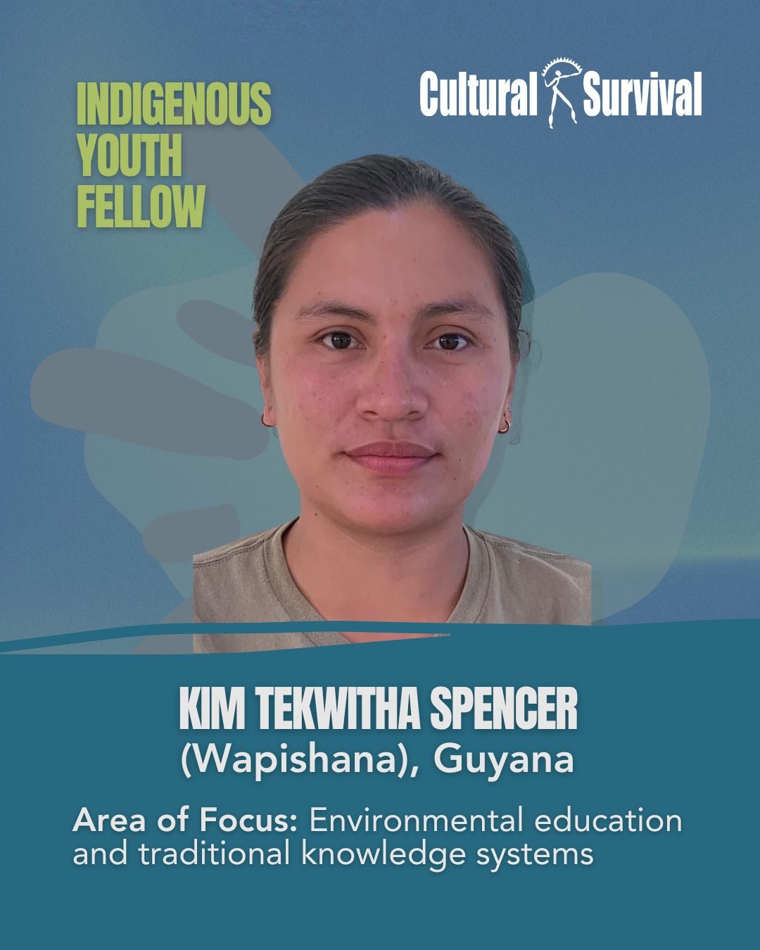 Kim Spencer est une jeune femme de Wapishana profondément attachée à la nature et passionnée par la préservation de l'environnement. Ses efforts en matière de conservation et d'éducation témoignent de sa passion et de son engagement inébranlables pour l'environnement. Le dévouement de Kim à la préservation de la culture et des traditions indigènes s'est manifesté dans son travail en tant que cadet garde forestier auprès de la South Rupununi Conservation Society, où elle a inlassablement défendu les voix de son peuple afin de protéger leur mode de vie. Elle est également au service de sa communauté en tant que professeur de mathématiques à l'école secondaire de Sand Creek, où elle a inculqué à ses élèves la gestion de l'environnement en menant des expéditions dans la nature pour les sensibiliser à la gestion de la faune et à l'équilibre de l'écosystème. Le projet actuel de Kim consiste à créer des espaces éducatifs sûrs et attrayants pour les enfants indigènes afin d'accroître leur connaissance des questions environnementales, de renforcer leurs capacités, de pratiquer leur artisanat traditionnel et de les inciter à assumer des rôles de leadership dans le domaine de l'environnement et de leurs compétences traditionnelles.