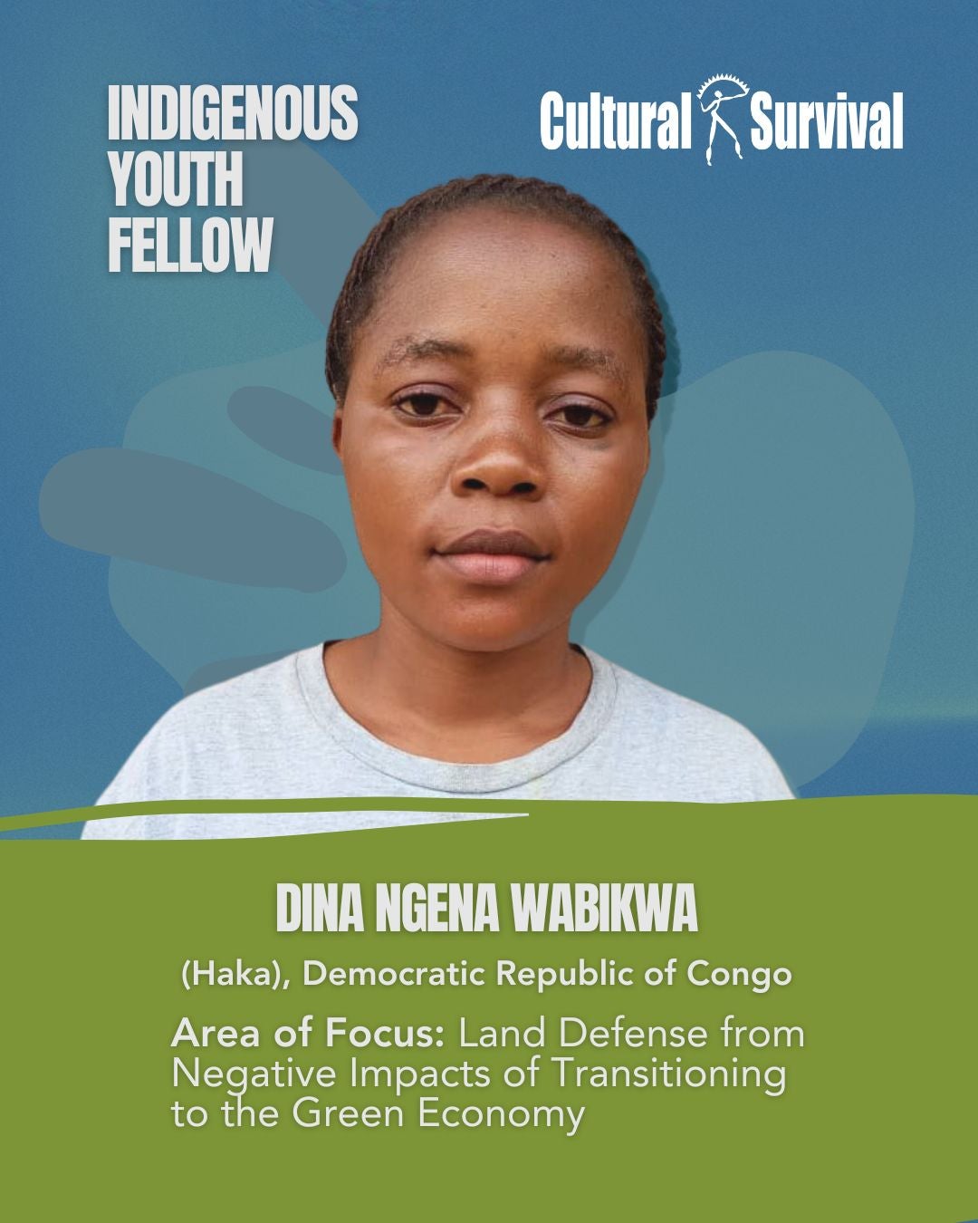Dina Ngena Wabikwa, une femme congolaise pygmée Haka, est passionnée par la conservation de la nature et travaille comme conservatrice communautaire et juriste. Sa communauté vit dans la forêt tropicale d'Itombwe et dépend des eaux de la rivière Elila depuis des milliers d'années. Cependant, la demande croissante de minerais de transition a conduit à l'installation de sociétés minières dans les villages, entraînant la pollution de la rivière et de graves conséquences pour la population. En réaction, Dina aide sa communauté à s'organiser et à s'attaquer à ce problème. Elle s'est engagée à trouver une solution et à permettre à sa communauté d'accéder à la justice environnementale, en particulier à la lumière de la pollution croissante causée par les sociétés minières.Son projet, "Projet de renforcement de la bonne gestion des eaux de la rivière Elila face à l'exploitation de minerais de transition dans le massif d'Itombwe au Sud-Kivu", vise à lutter contre la pollution de l'eau de la rivière Elila causée par les opérations minières.