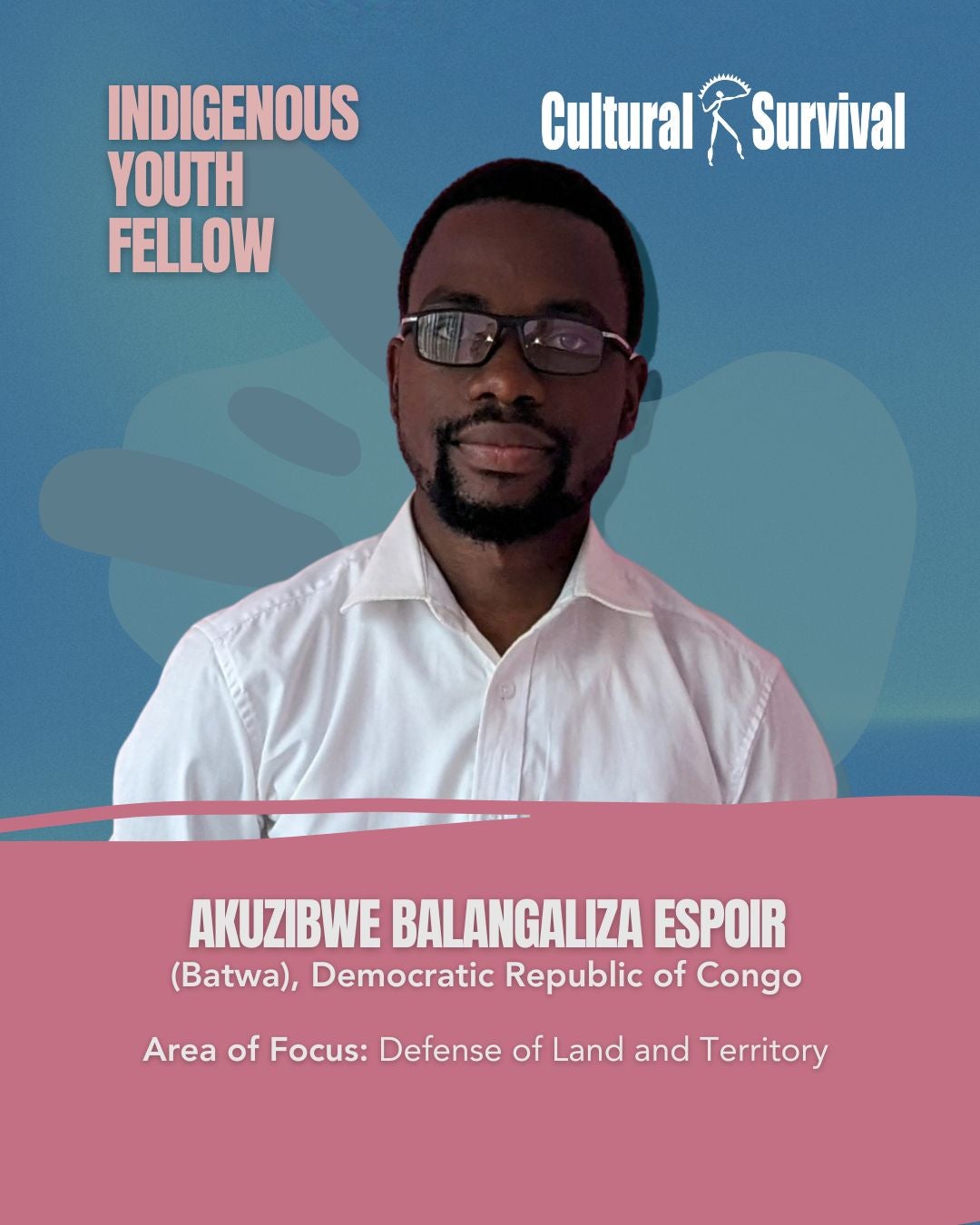 Akuzibwe Balangaliza Espoir (Espoir Balangaliza) est un jeune défenseur des peuples autochtones en République démocratique du Congo. Il est le coordinateur du Réseau Espace Climat, qui rassemble plusieurs organisations de peuples autochtones et de la société civile dans l'est de la RDC. Il est également délégué de la jeunesse de l'Union africaine en RDC et ambassadeur de la paix et du climat pour Peace World International. Espoir est activement impliqué dans des projets et des initiatives de promotion des droits des peuples autochtones aux niveaux national, régional et international depuis 2017. Il se concentre particulièrement sur le volontariat et le plaidoyer pour la protection des personnes déplacées et le renforcement de la culture autochtone à travers l'engagement communautaire. Il a participé à diverses conférences, notamment le Sommet africain sur le climat à Nairobi et la conférence mondiale des jeunes sur le climat en Tanzanie. La participation d'Espoir à la COP 28 à Dubaï lui a permis de contribuer aux négociations internationales sur la défense des droits des peuples autochtones. Son projet, "La promotion et la vulgarisation des briquettes produites à base des biomasses", promeut les briquettes de biomasse comme source d'énergie alternative à la déforestation dans les communautés autochtones Bambote et Batwa du village de Fizi dans la province du Sud Kivu, en réponse à l'objectif de développement durable n°7.