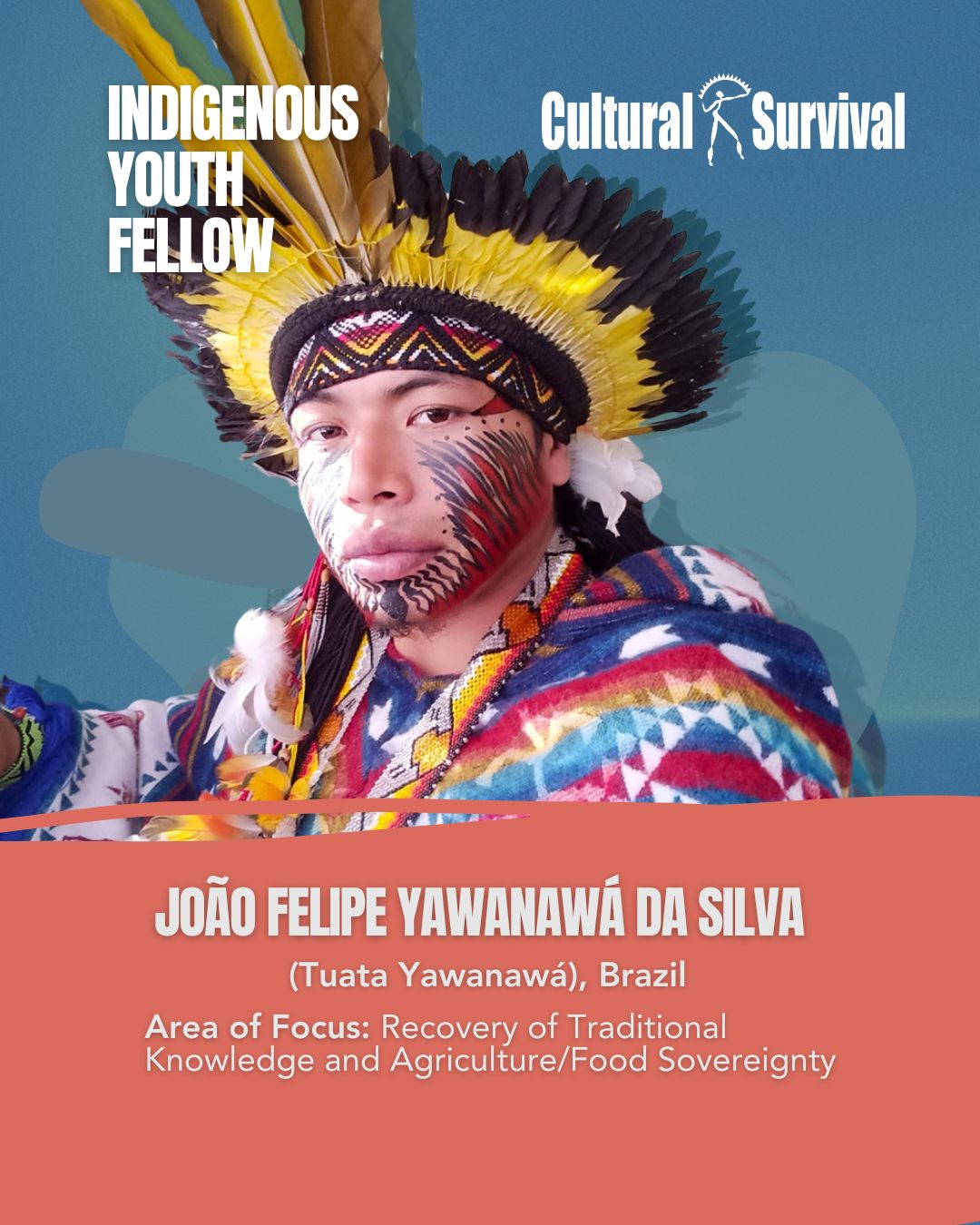 João Felipe Yawanawá da Silva est un membre du peuple Yawanawá, né et élevé en Amazonie brésilienne. Il a fondé le centre Emâ Vena, qu'il dirige avec sa famille. João est fier d'être un modèle et une source d'inspiration pour d'autres jeunes de sa communauté en tant que mobilisateur de projets nouveaux et existants. Il travaille avec les pratiques traditionnelles et les plantes médicinales de son peuple, et c'est un musicien talentueux qui puise son inspiration et sa force dans la nature pour son art et son travail. Issu d'une famille d'agriculteurs et de guérisseurs, João continue d'apprendre et de progresser dans le domaine de l'agriculture traditionnelle. Il construit de nouveaux espaces de plantation et s'engage dans la préservation culturelle et la protection de la nature, des rivières et des forêts de son territoire. Son projet, « Emâ Vena », vise à renforcer la préservation de l'environnement naturel du village et à contribuer à la reforestation indigène de son territoire.