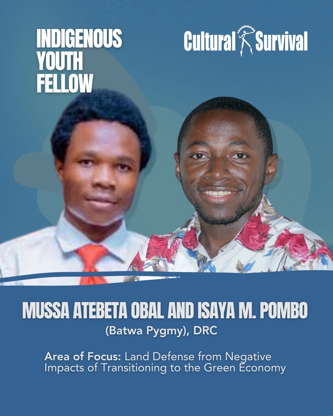 Isaya M. Pombo est un pygmée Batwa de la ville de Baraka, dans le Sud-Kivu, en RDC. Il est titulaire d'un diplôme en technologie de l'information de l'Université Espoir Afrique de Bujumbura. Il est membre de l'AVID, où il est chargé des nouvelles technologies et de la communication. Il travaille également à la radio Voix de la Femme Autochtone, créée par AVID pour amplifier les voix des femmes autochtones dans la défense de leurs droits et promouvoir la cohésion sociale dans l'est du Congo. Isaya est fier de ses racines et s'inspire de son identité culturelle pour guider ses actions. Il aspire à un avenir où les peuples autochtones vivront dans la dignité et le respect, en utilisant la technologie pour promouvoir la justice sociale et protéger les ressources naturelles.