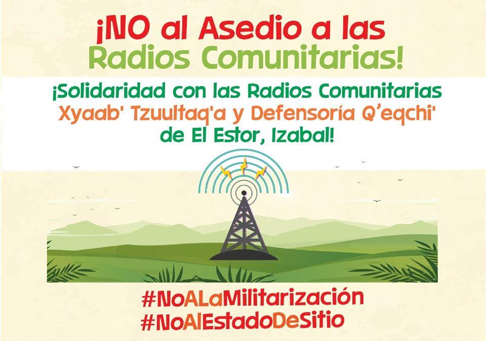 LAS ORGANIZACIONES FIRMANTES repudiamos el allanamiento a las instalaciones de Radio Comunitaria Xyaab’ Tz’ultaqa, del Estor Izabal, por parte del Ministerio Publico y la Policía Nacional Civil, aprovechándose del estado de sitio.