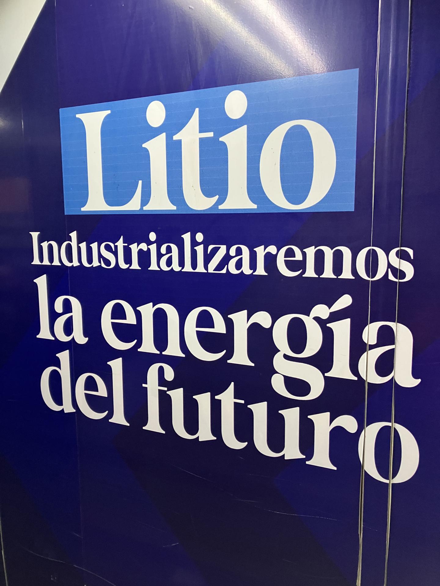 An airport billboard in Uyuni that reads, “Lithium: We will industrialize the energy that moves the world.”