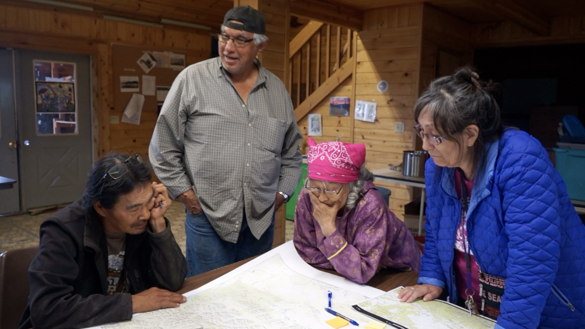 Top photo: Village of Ambler Traditional Council members study a map of the proposed Ambler Road