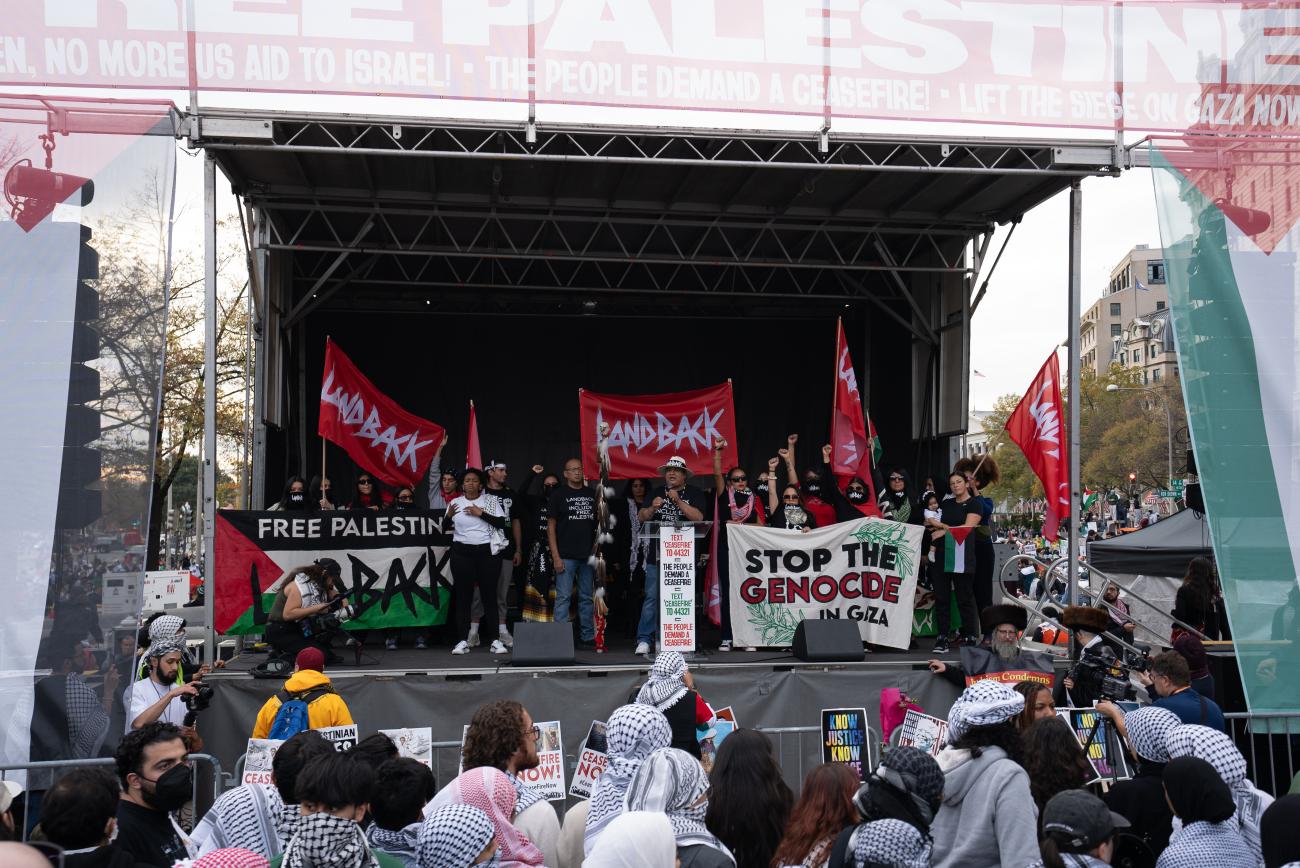 NDN Collective staff at the November 4, 2023 Free Palestine/ Ceasefire rally and march on Washington, D.C.. Photo by Cristina Verán.