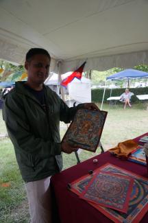Photo: Ujjwal Shrestha showcasing his art at the Tiverton, RI Bazaar in July. Photo by Jess Cherofsky.