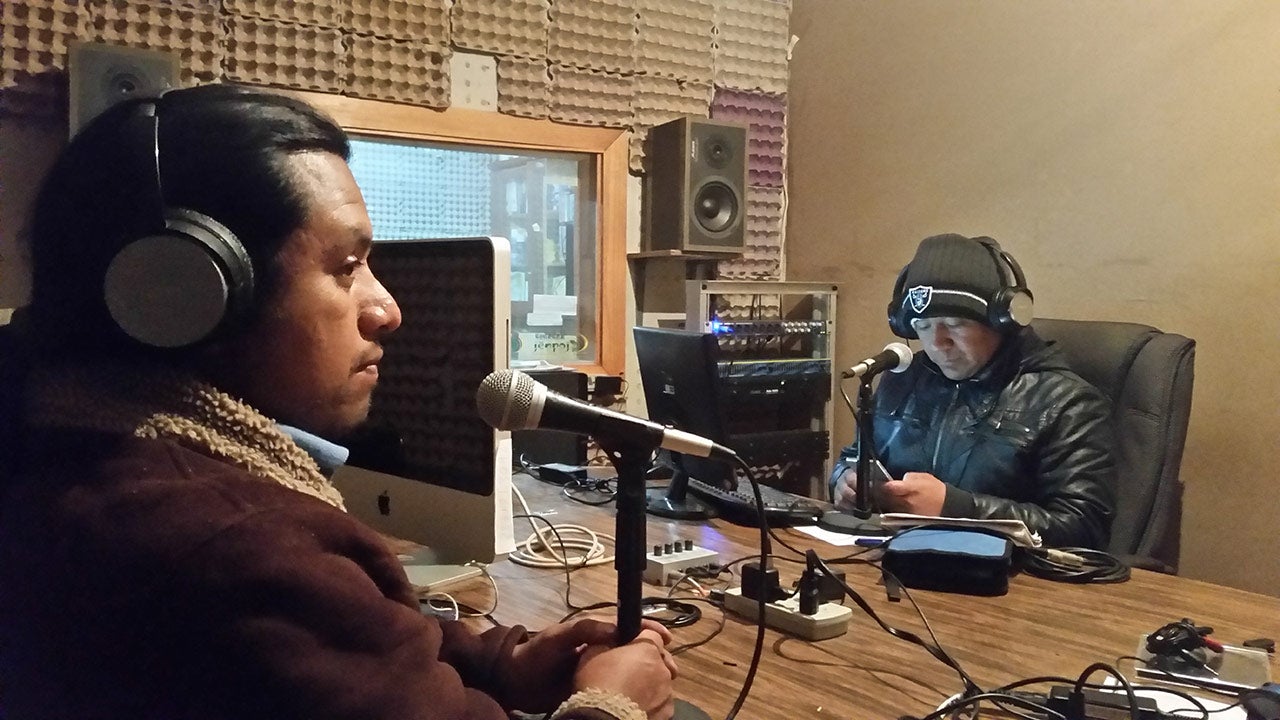 Sócrates Vásquez Garcia (Ayuuk) on air at Radio Jënpoj in Tlahuitoltepec Mixe, Oaxaca, Mexico.