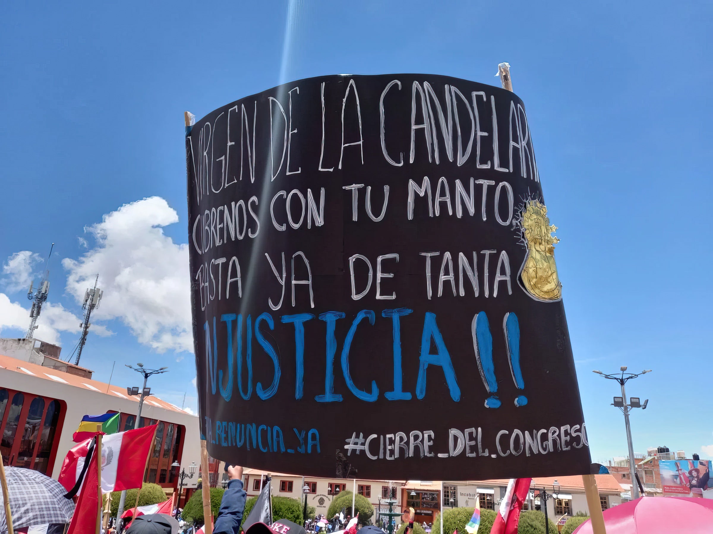 Request to the Holy Virgin Maria de la Candelaria (embodiment of Pachamama) of Puno for protection and to stop the violence against the Indigenous defenders.