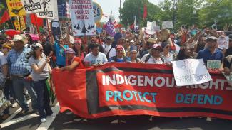 On April 29, 2017, over 200,000 people took to the streets in Washington, D.C. for the People’s Climate March, demanding action on “Climate, Jobs, and Justice.” Amplifying the reality of the climate message, demonstrators chanted, sang, and played drums and other instruments on this Spring day that reached 91 degrees and tied a D.C. heat record. While the march was scheduled for before the November election, organizers saw this as a historic opportunity to show the current U.S. administration, and the world, that the movement is ready—not only to fight the fossil fuel industry, but to reject racism, hatred, and xenophobia. The march down Pennsylvania Avenue was led by youth and frontline communities, including a large and diverse contingent of Indigenous Peoples from around the world.