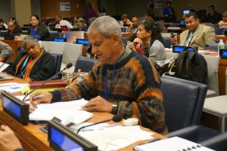 Brooklyn Rivera (Miskitu) makes an intervention at the UN Permanent Forum on Indigenous Issues in May about violence against his people in Nicaragua.