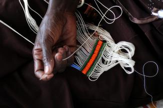 Sara Jok, a 53-year-old widowed mother of six, commented, “The first day was difficult; I didn’t interact with the women. But as we continued with work, I learned a lot from the group besides beadwork. We call ourselves one family.” Another member, Akwar, 54, from the Anyuak Tribe, added, “The project has brought me joy and peace. I used to stay home and think about my family; I had no friends to talk to. I gained friendship, and most importantly, the project [was therapeutic]” she says. Akwar has been separated from her family since the beginning of Sudan’s civil war in 2013.